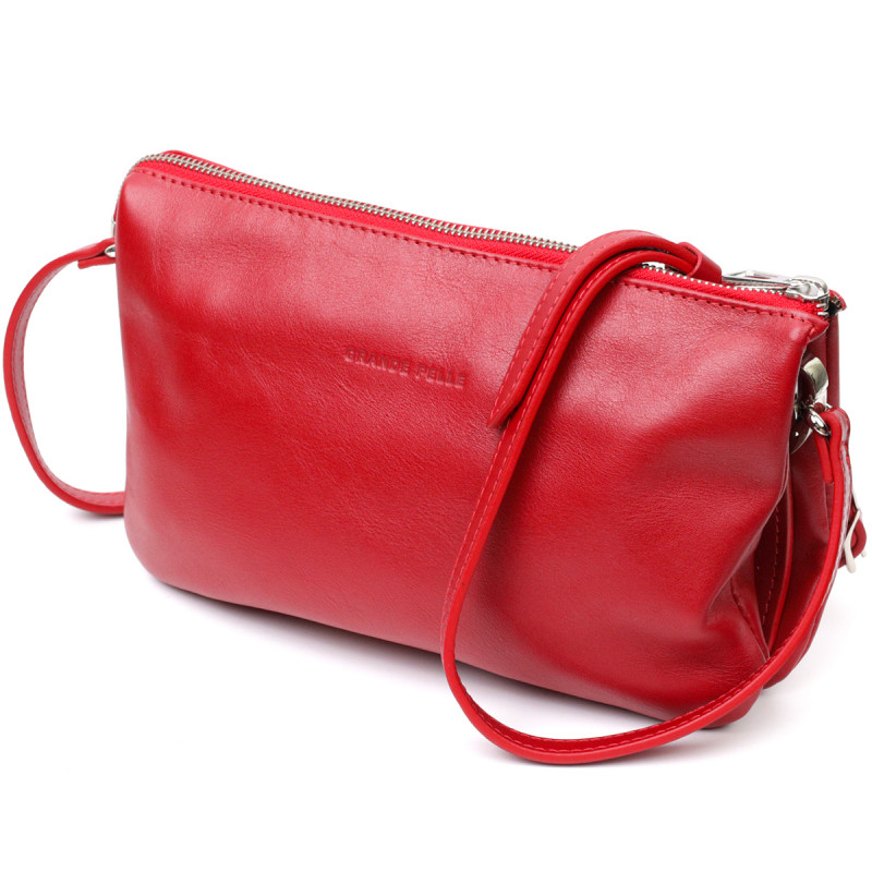 Яркий женский клатч из натуральной кожи GRANDE PELLE Красный
