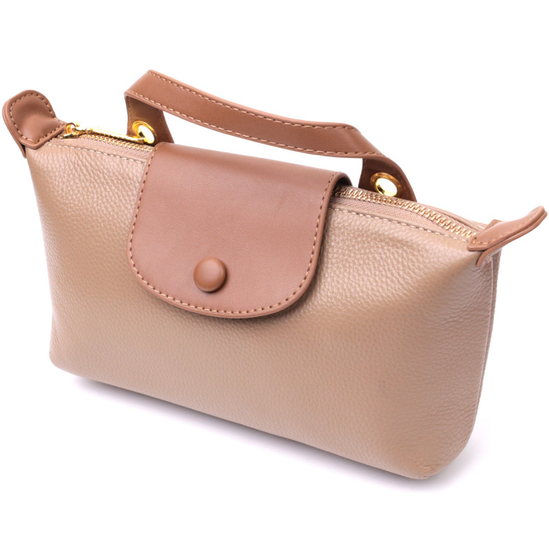 Идеальная женская сумка с интересным клапаном из натуральной кожи Vintage Бежевая
