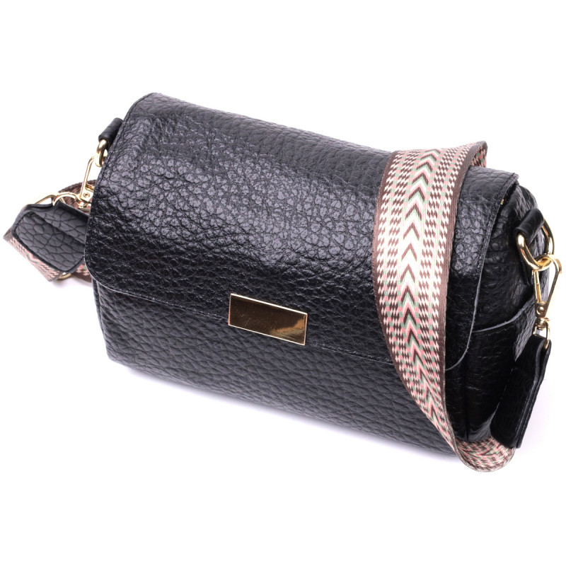 Классическая кожаная женская сумка с оригинальной плечевой лямкой Vintage Черная