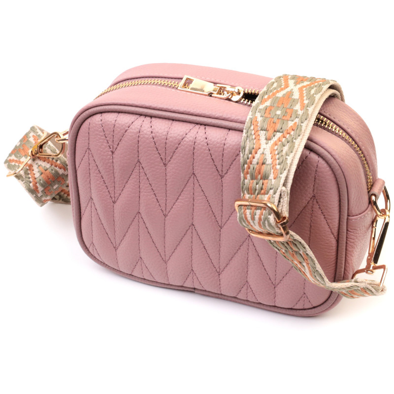 Красивая стеганая женская сумка из натуральной кожи Vintage Розовая