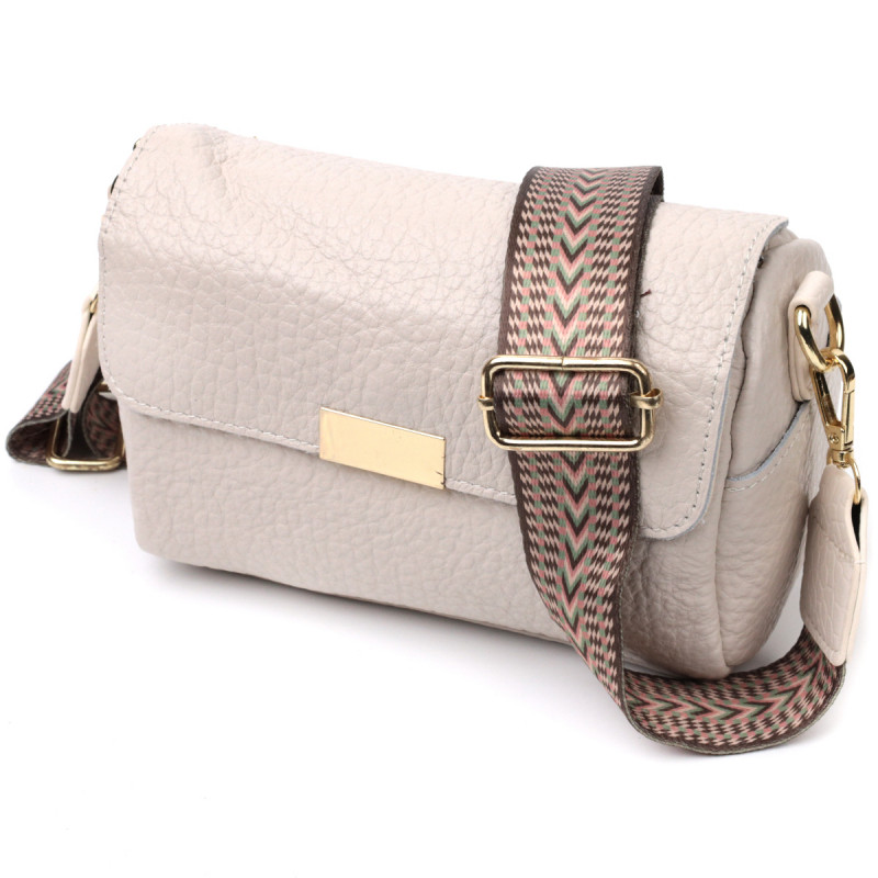 Красивая кожаная женская сумка с оригинальной плечевой лямкой Vintage Белая