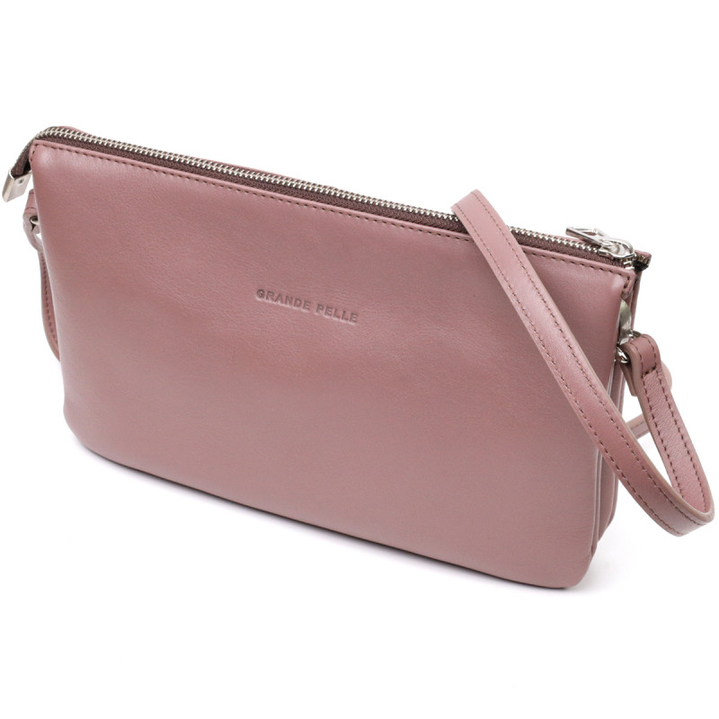 Красивый женский клатч из натуральной кожи GRANDE PELLE Пудровый