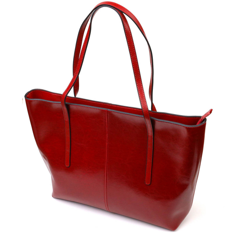 Вместительная сумка шоппер из натуральной кожи Vintage Бордовая