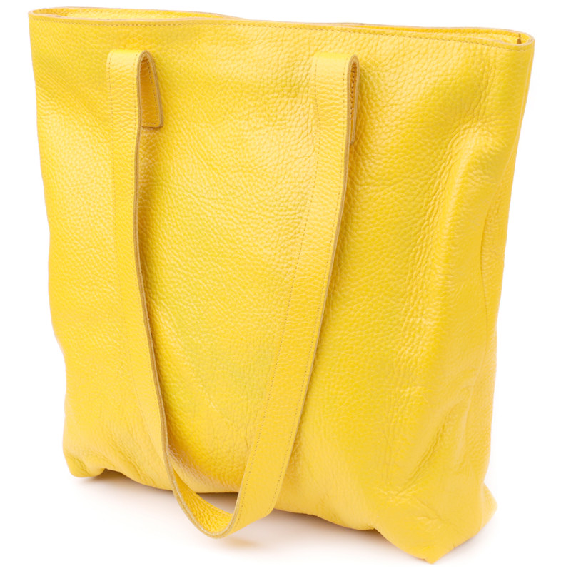 Вместительный женский шоппер из натуральной кожи Shvigel sale_ Желтый
