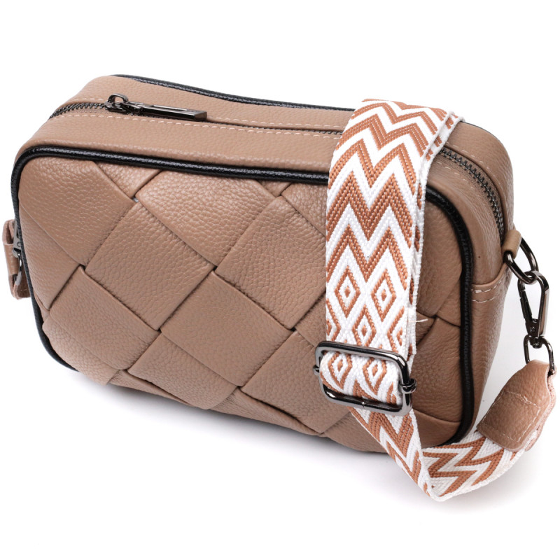Модная кожаная сумка с переплетами для стильных женщин Vintage Бежевая