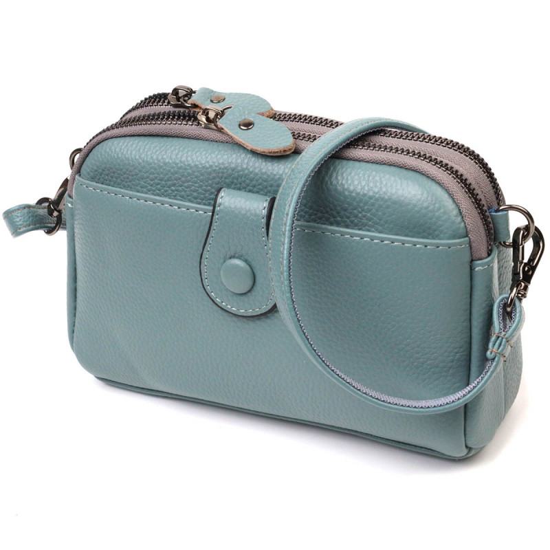 Модная сумка-клатч в стильном дизайне из натуральной кожи Vintage Серо-голубая