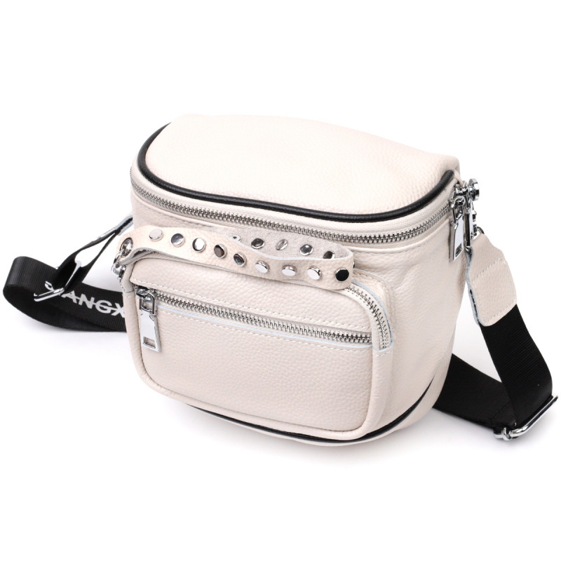 Оригинальная сумка для женщин небольшого размера из натуральной кожи которая неприхотлива в уходе и долго носится. Аксессуар состоит из одного отделения, что закрывается на молнию, трех карманов на молниях, которые расположены внутри и снаружи. Носить сумку можно на поясе, на плече, а также через плечо. В аксессуаре использована качественная фурнитура цвета серебра. Отличный вариант стильной сумки для женщин, которые любят качественные и стильные вещи.