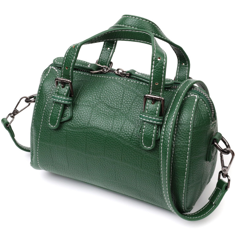 Небольшая женская сумка с двумя ручками из натуральной кожи Vintage Зеленая