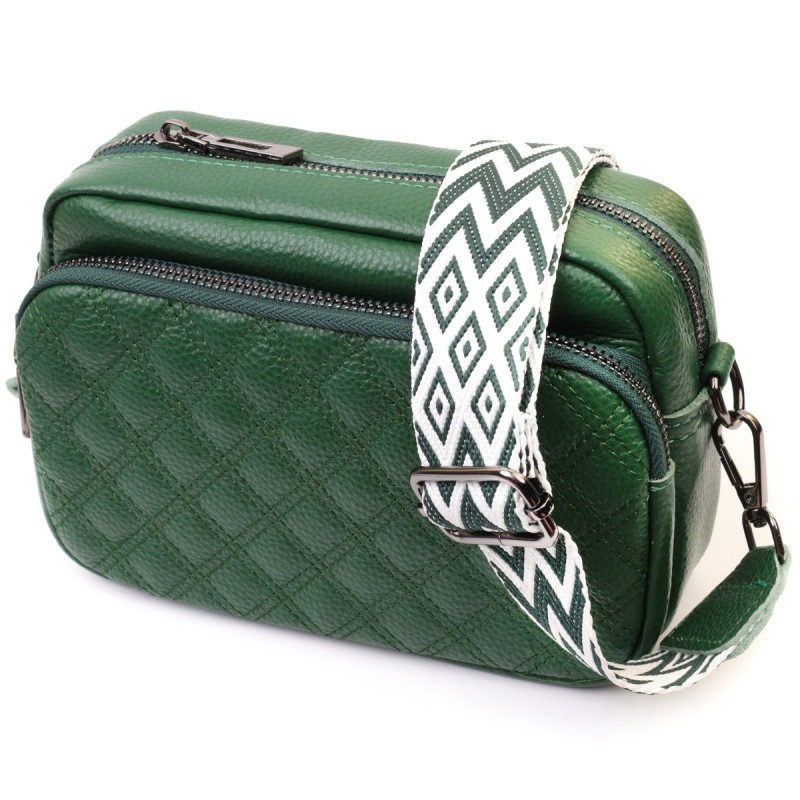 Небольшая женская сумка прошитая ромбами на лицевой стороне из натуральной кожи Vintage Зеленая