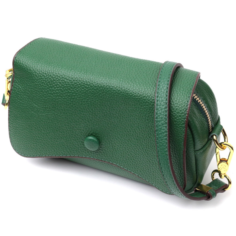 Кожаная женская сумка в красивом цвете и с фигурным клапаном Vintage Зеленая