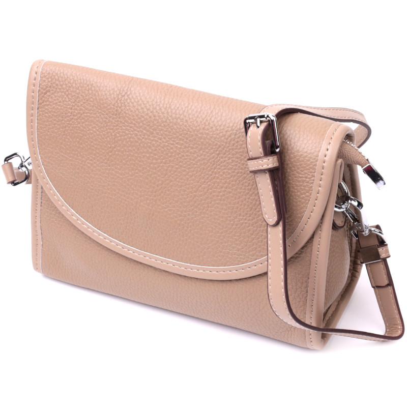 Кожаная женская сумка с полукруглым клапаном Vintage Бежевая