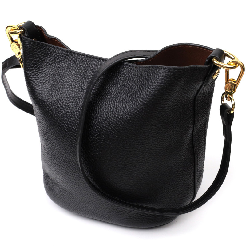 Кожаная женская сумка с автономной косметичкой внутри Vintage Черная