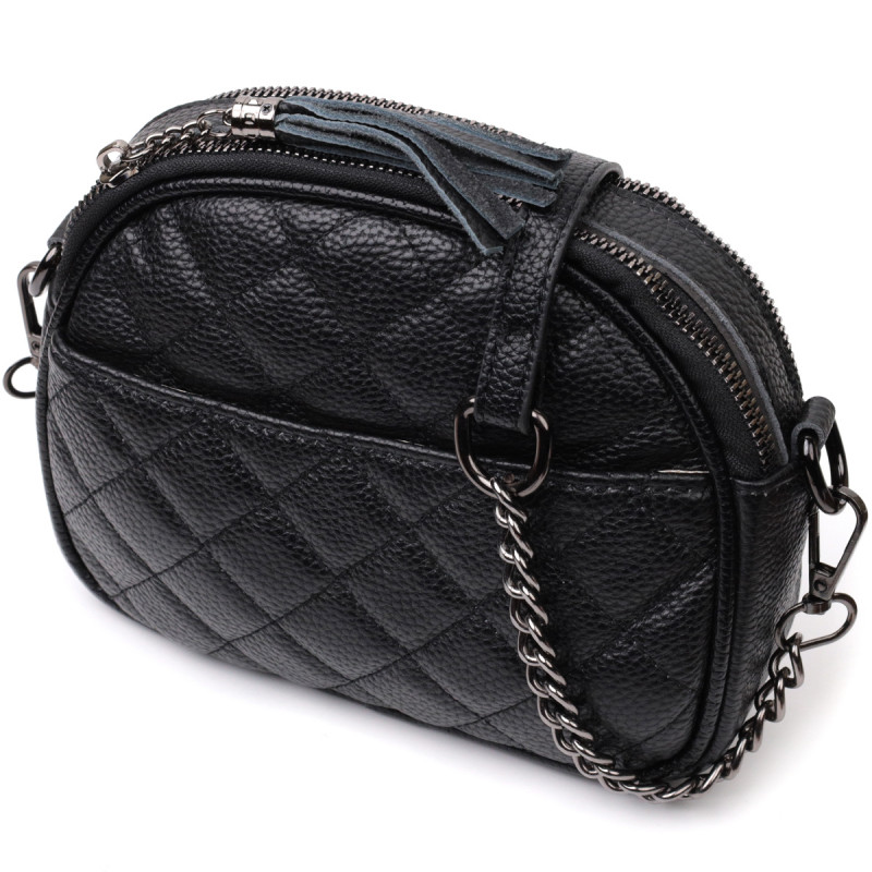 Стеганая сумка для женщин из мягкой натуральной кожи Vintage Черная