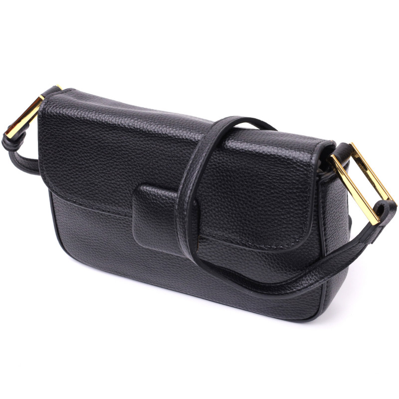 Лаконичная сумка с жестким каркасом из натуральной кожи Vintage Черная