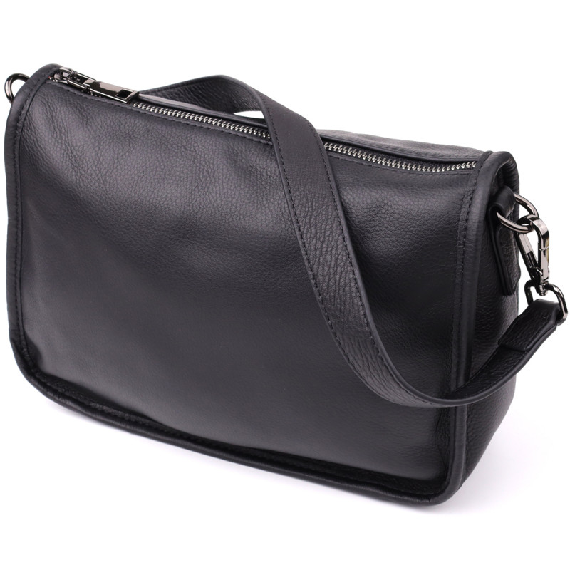 Чёрная кожаная сумка с двумя ремешками — универсальный аксессуар, который станет надёжным и стильным спутником в повседневной жизни.