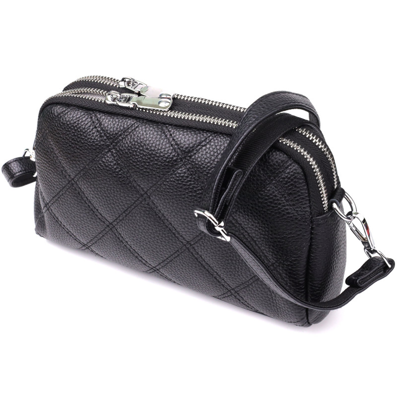 Женская сумка прошитая ромбами из натуральной кожи Vintage Черный