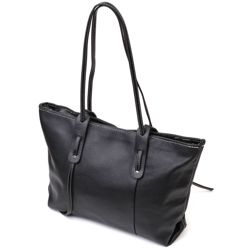 Вместительная женская сумка из натуральной кожи Vintage Черная
