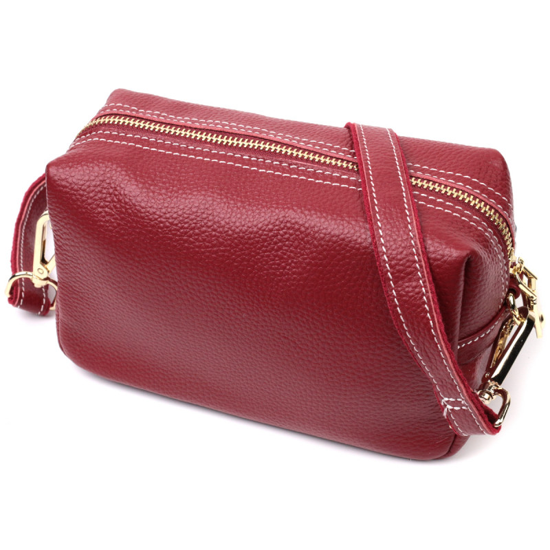 Интересная женская сумка с двумя ремнями из натуральной кожи Vintage Бордовый