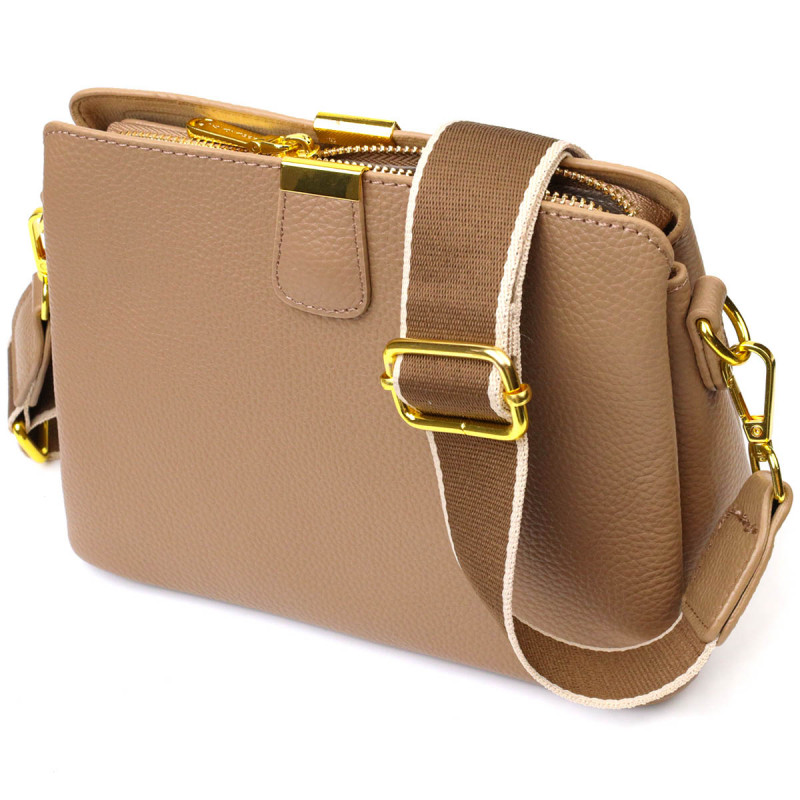 Женская модная сумка на три отделения из натуральной кожи Vintage Бежевая