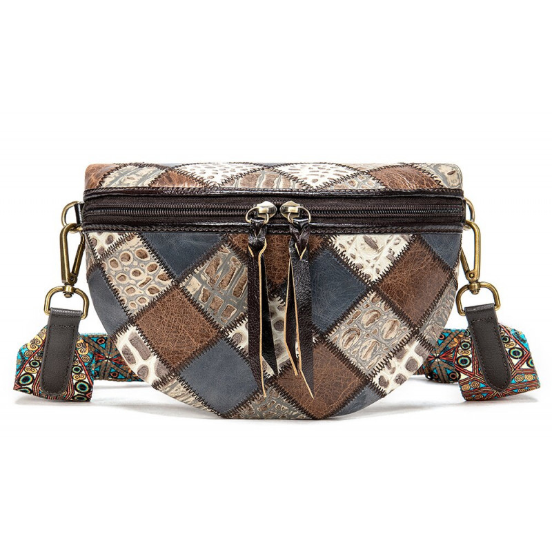 Качественная женская бананка с оригинальным модным дизайном. Модель очень качественно выполнена и подойдет для любой представительницы слабого пола. Дизайн бананки напоминает лоскутное одеяло. В сочетании с ярким текстильным ремешком бананка будет по душе любой девушке. С такой бананкой вам будет удобно как в поездках, так и в повседневной жизни. Рекомендуем вам данную модель, если вы находитесь в поиске подарка для женщины.