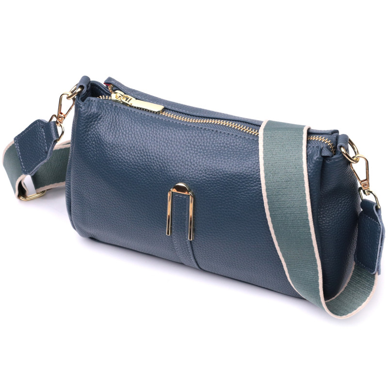 Женская практичная сумка через плече из натуральной кожи Vintage Синяя