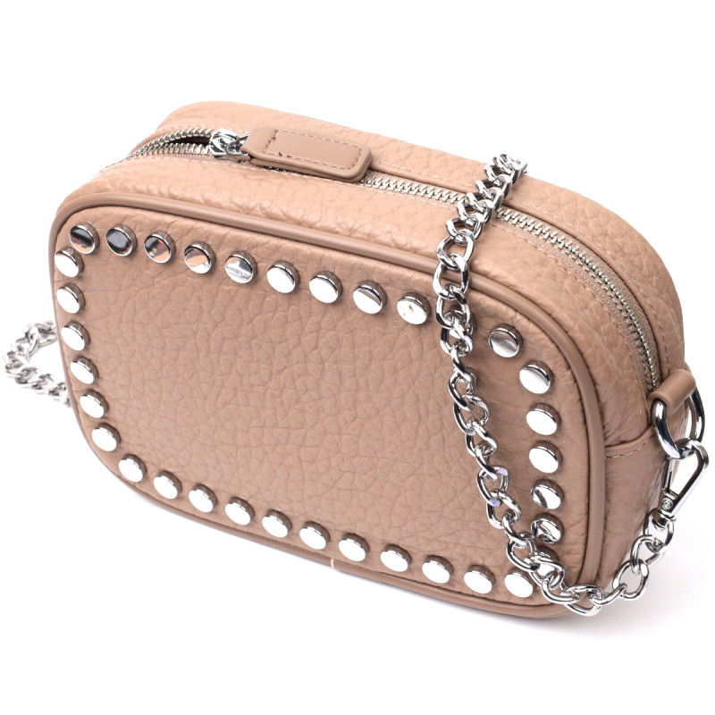 Женская кожаная сумка декорированная металлическими кнопками Vintage Бежевая