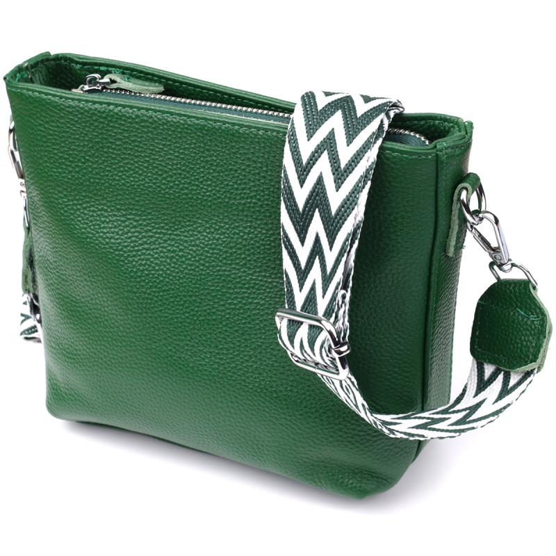 Оригинальная и стильная сумка из натуральной кожи в насыщенном зелёном цвете — эффектный акцент в вашем повседневном или деловом образе. Модель оснащена одним основным отделением, которое надёжно закрывается на молнию. Внутри расположены два удобных кармана: потайной на молнии для хранения ценных мелочей и открытый карман — для предметов, к которым нужен быстрый доступ.