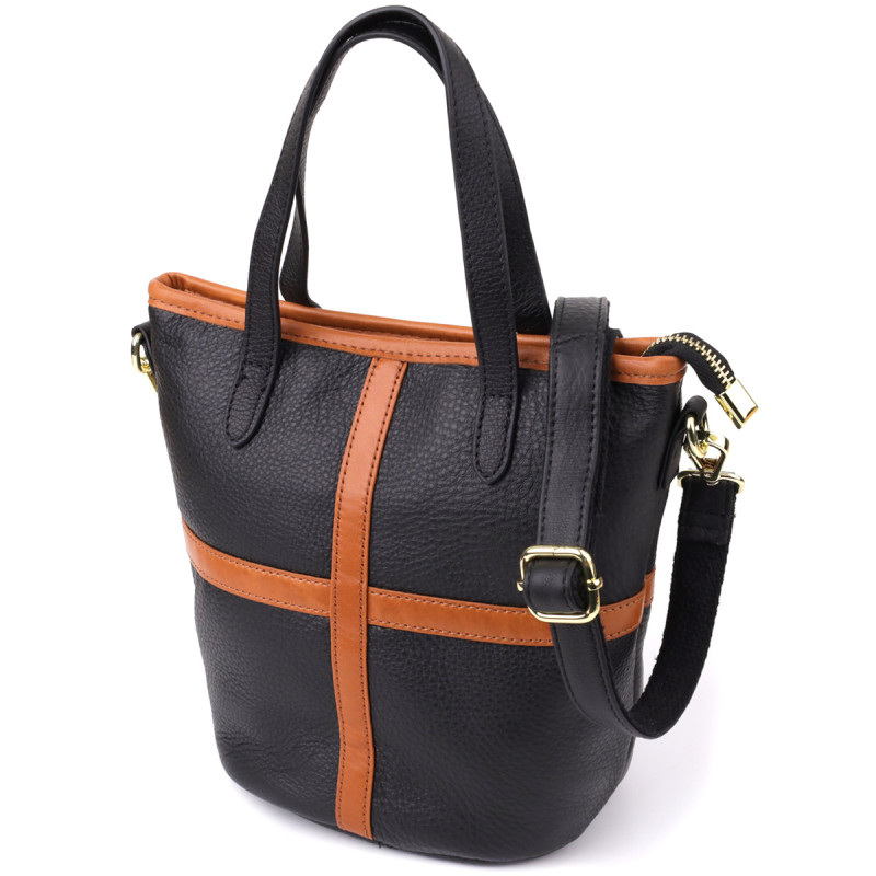 Женская кожаная сумка с коричневой вставкой на лицевой стороне Vintage Черный