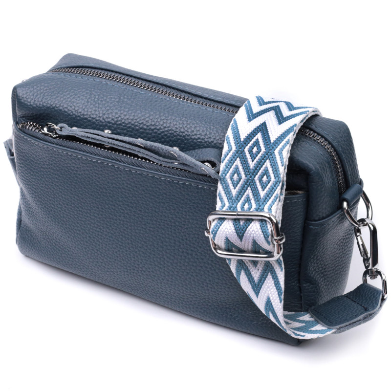 Женская кожаная сумка из стильным бегунком Vintage Синяя