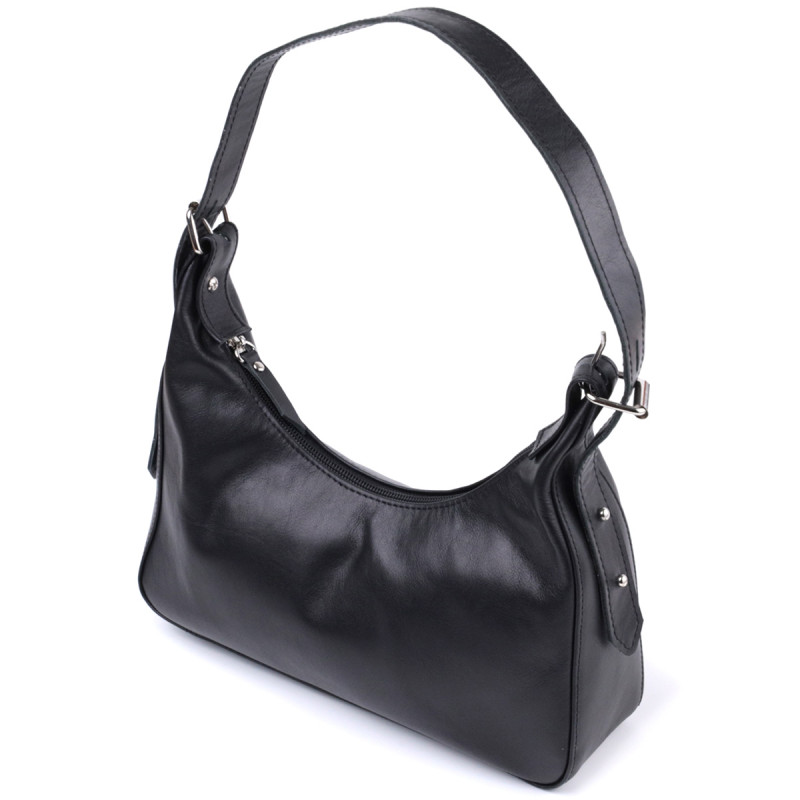 Женская сумка багет с регулируемым ремнем из гладкой натуральной кожи Shvigel Черная