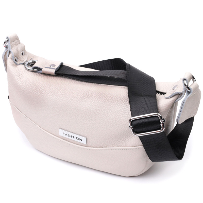 Женская сумка через плечо с необычным бегунком брелком из натуральной кожи Vintage Белая