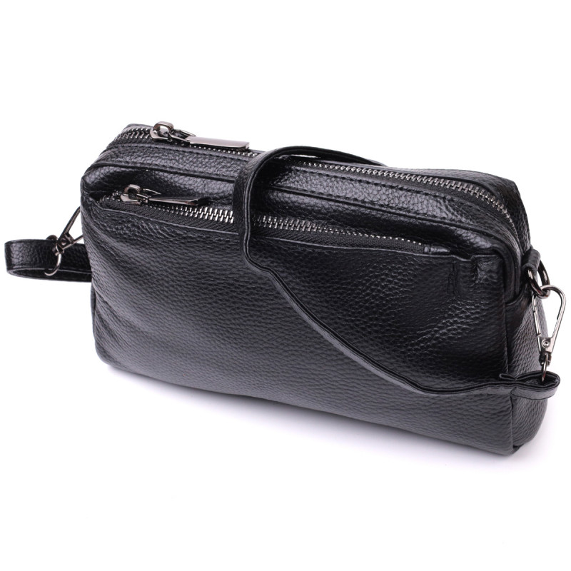 Женская сумка-клатч из мягкой натуральной кожи Vintage Черная