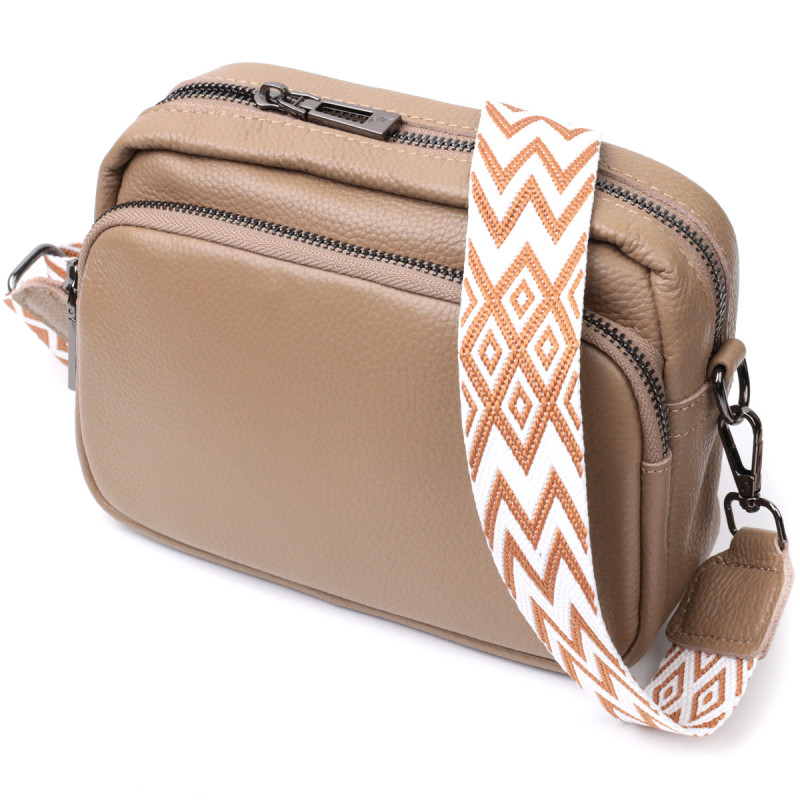 Женская сумка кросс-боди из натуральной кожи Vintage Бежевая