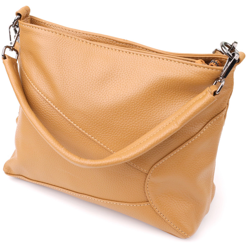 Эта светло-коричневая кожаная сумка станет надежным и элегантным спутником, который сочетает в себе комфорт, функциональность и утонченный вкус.