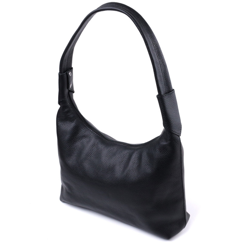Фантастическая вместительная женская сумка для тех, кто предпочитает строгий и лаконичный дизайн без излишеств. Цвет изделия – классический черный, а значит, она подойдет под любой стиль одежды, фактура – зернистая. Материал исполнения – натуральная мягкая кожа с высокими показателями качества. Носить сумку можно в руках и на плече для этого предусмотрена крепкая кожаная ручка, также в изделии использована качественная фурнитура серебряного цвета.