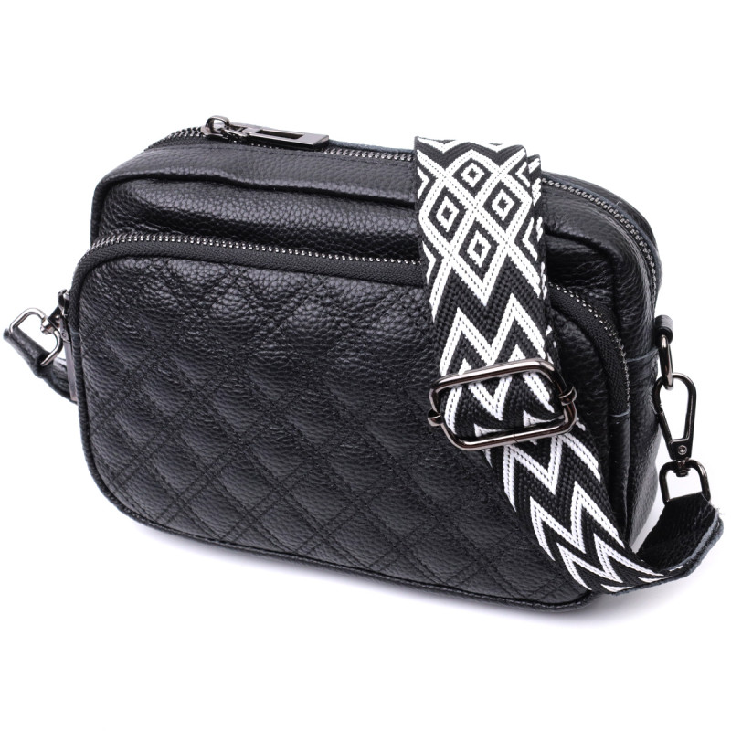 Женская сумка прошитая ромбами на лицевой стороне из натуральной кожи Vintage Черная