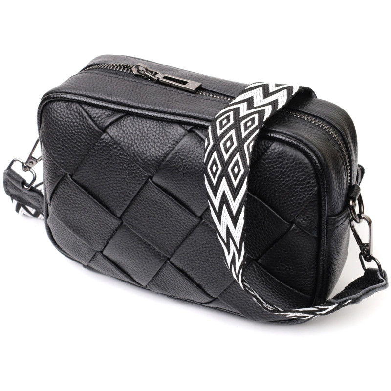 Женская сумка с переплетами из натуральной кожи Vintage Черная
