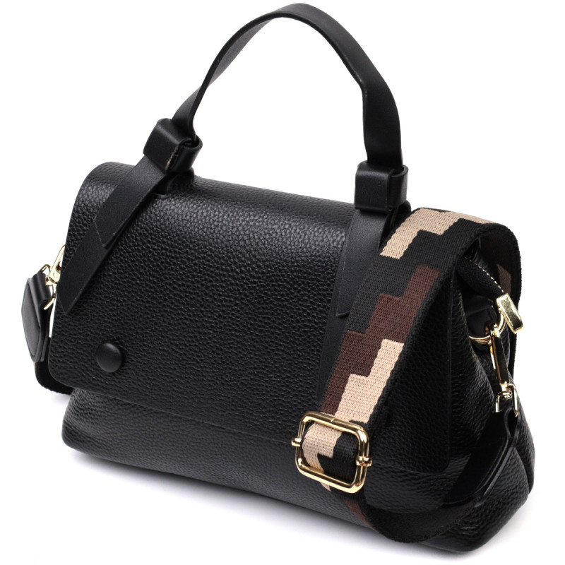 Женская сумка с интересною ручкой из натуральной кожи Vintage Черная