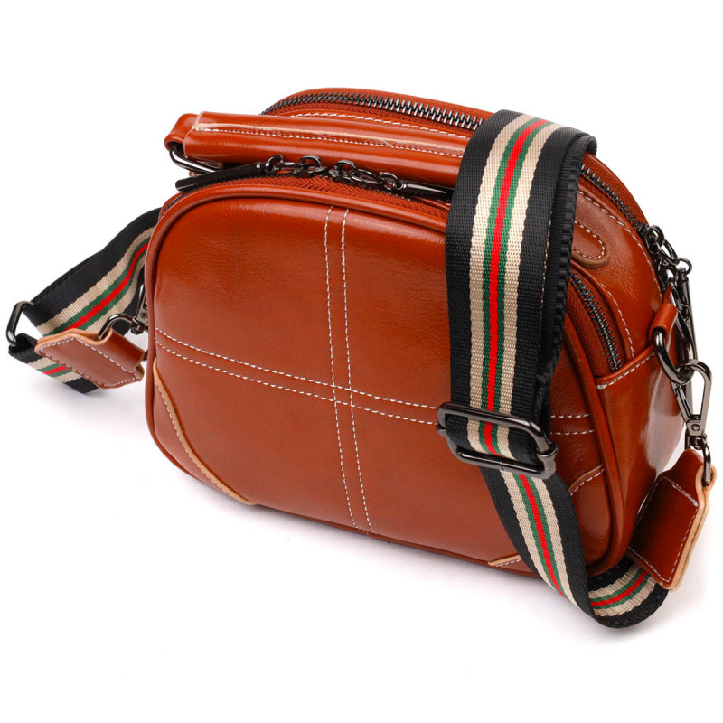 Удобная глянцевая сумка на плечо из натуральной кожи Vintage Коричневая