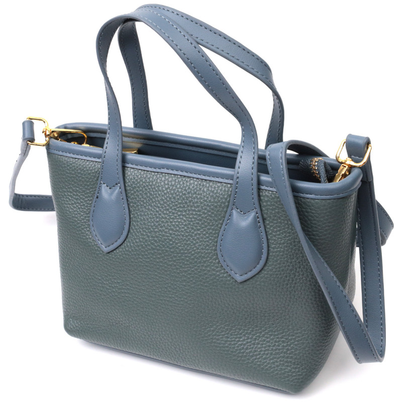 Елегантна сумка з двома ручками з натуральної шкіри Vintage Блакитна