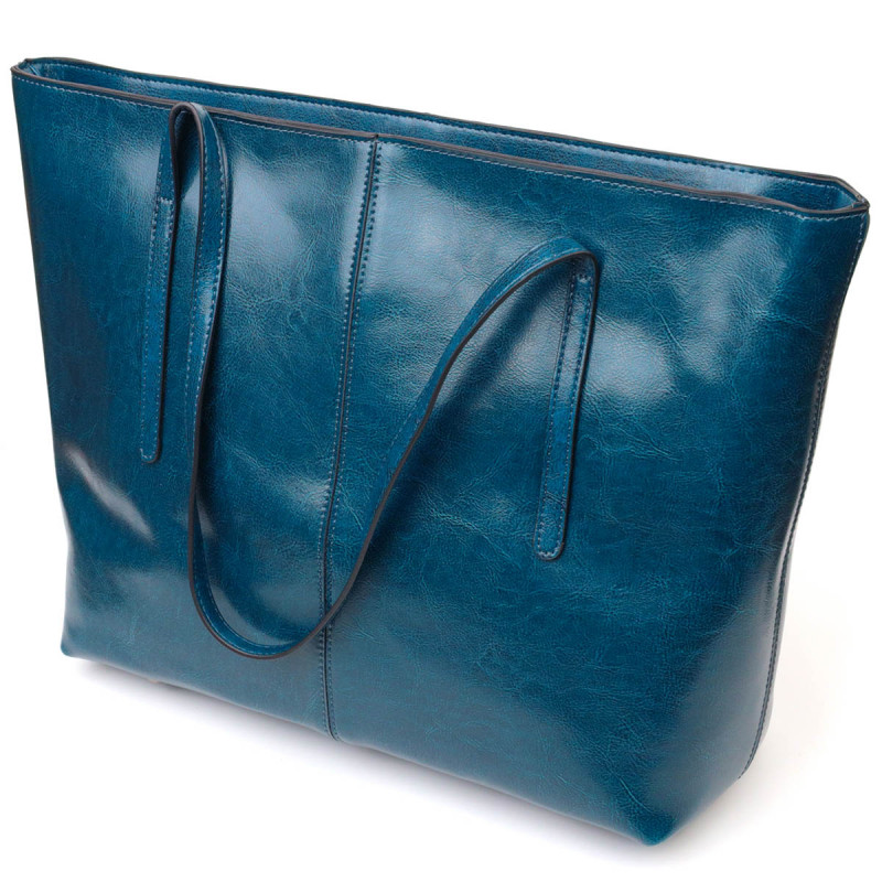 Красива сумка шоппер із натуральної шкіри Vintage Бірюзова