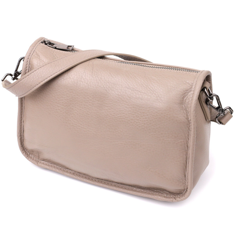 Фурнітура кольору срібла підкреслює холодний тон шкіри, створюючи акуратний та стильний контраст. У комплект входять два знімні ремінці - шкіряний і текстильний, що дозволяють носити сумку в різних варіантах: на плечі, через плече або в руці.