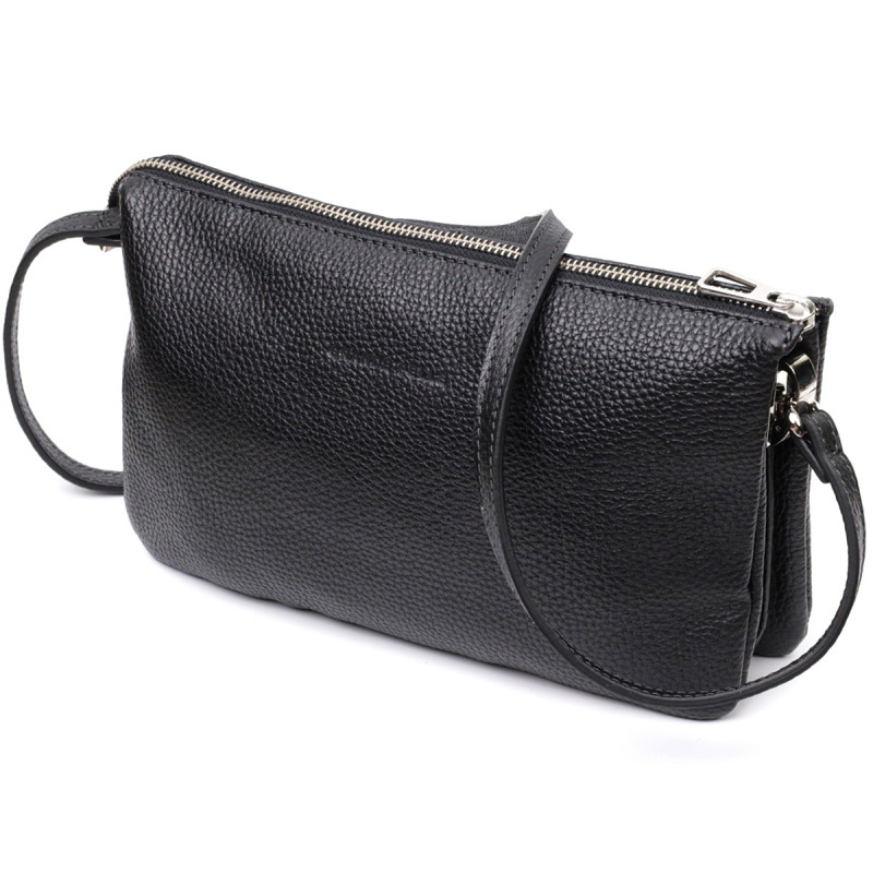 Зручний жіночий клатч із натуральної зернистої шкіри GRANDE PELLE Чорний